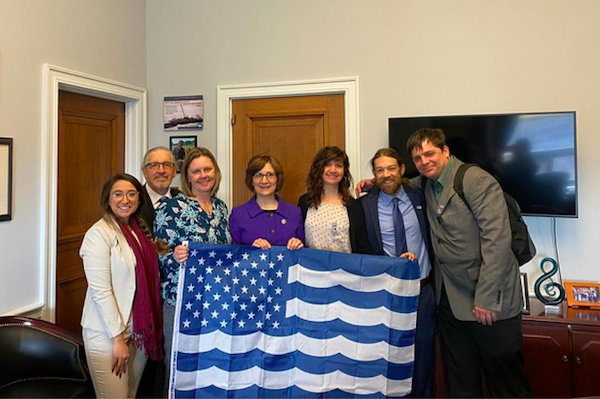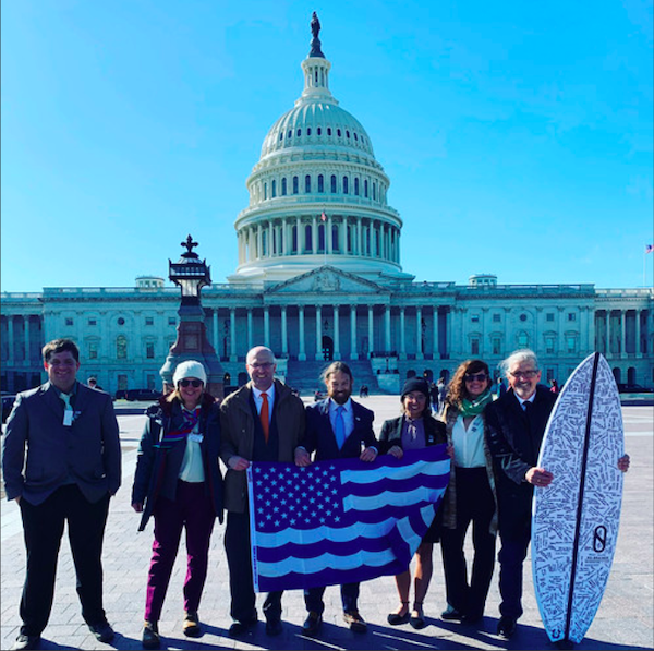 A major priority of Hill Day was demanding federal action to address the climate crisis that is damaging our coasts and ocean. Hill Day participants urged their representatives in Congress to support legislation to reduce greenhouse gas emissions, stop new oil and gas drilling, and help communities adapt to sea level rise and extreme weather events. During meetings, Surfrider presented federal leaders with surfboards and letters signed by thousands of citizens and businesses asking for immediate action on climate change.