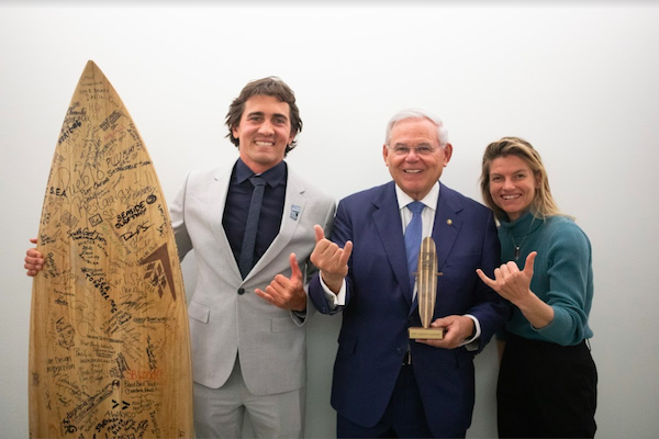 Surfrider also organized an industry reception in the Dirksen Senate Building to highlight the impact of climate change on coastal recreation across the United States. Speakers included Surfrider CEO Dr. Chad Nelsen, Surf Ambassadors Leah Dawson and Greg Long, and BAPPC Founder Vipe Desai. As part of the reception, Surfrider honored Senator Bob Menendez (NJ) and Congressman Francis Rooney (FL) for outstanding legislative leadership to address climate change and protect our coastal waters.