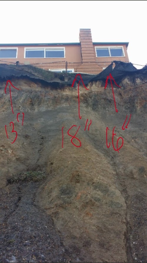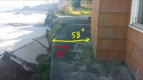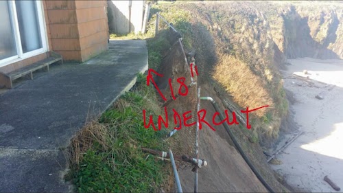 We've done a bit of research and documentation on the property and our primary interest is to work with the property owner, the county and the state to determine a suitable solution that takes into account the public's safety and enjoyment of the beach as well as the homeowner's options. The house is currently vacant, and the homeowner lives in Georgia, so at this point in time we're not even sure of their knowledge of the structure's imminent danger to the beach. To that extent, we've worked with OPRD, touring the site beach side and documenting some of the concerns (see photos below) to help build the case for the public's concern for safety and reasonable response. In a letter today issued from the Oregon Parks and Recreation Department, the homeowner was notified of the impending danger and the responsibility of the homeowner for any cleanup and removal that could occur from continued site erosion. We hope to take this as a first step and see where it leads us with the homeowner.