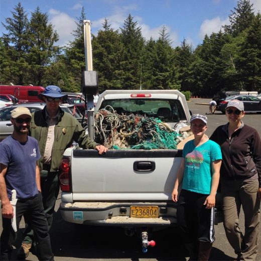 Working with volunteers and Oregon State Parks to remove 1,000 pounds of rope from Netarts Spit.