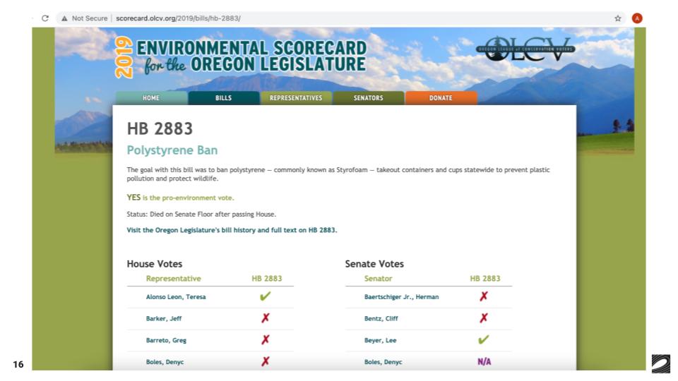 - Communicate with them in at least one format and ask them to support House Bill 2617 for a Foam-Free Oregon!