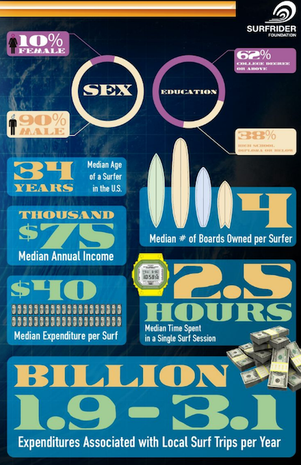 Chad Nelsen, environmental director for Surfrider Foundation recently published this great short article in Making Waves regarding his massive Socioeconomic and Recreational Profile Study on US Surfers. The article gets straight to the point, with great illustrations. The full report is also available for download. Click here to read (from our new digital Making Waves!) or just click on the photo above!