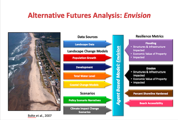 While successful, these projects identified gaps in previous studies. The current Oregon Coastal Futures Project, beyond expanding analysis to the entire Oregon Coast, has added several components that will enhance our understanding of Oregon's vulnerabilities and inform future resilience planning that (hopefully) supports our interests in coastal preservation.