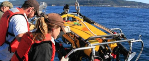 ODFW Marine Reserve Program staff deploy an remotely operated underwater vehicle (ROV) into one of Oregon's marine reserves