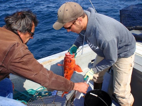 Volunteers with ODFW release rockfish as part of marine reserve monitoring
