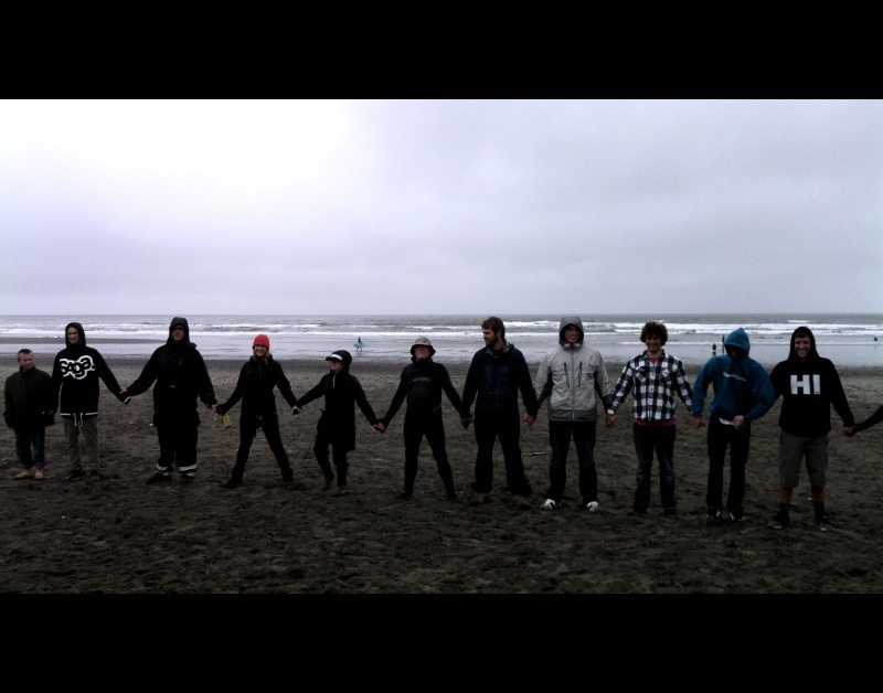 Surfrider activists participating in Hands Across the Sand at the Clean Water Classic in Westport, WA 2013