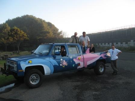 This shark is designed to take a bite out of littered beaches! At last month's Newport Chapter meeting the Lincoln City Green Drinks came out to present to us on their fabulous Beach Shark cleanup mobile! The concept came from the group's effort to make the central coast beaches the cleanest in the world. So what did they decide to do? By a vehicle, run it on veggie oil and use it as often as possible to run large beach cleanup efforts...now who can object to that? The group is hoping that there concept becomes viral and that the model can be used to start up beach shark efforts around the globe! Great work and our hats off to this group and thier efforts! Pictured at right is the crew that drove down from Lincoln City to discuss thier growing effort with the cleanup mobile...Next up is the Rogue contest this weekend, where we'll hopefully team up to clean up after the Gathering!