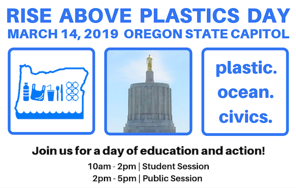 02.20.19 Join Us March 14 for Rise Above Plastic Pollution Day at the Oregon Capitol! By Charlie Plybon Join us for a Day of Education and Action! 10am-2pm Student Session 1pm-2pm Legislative Panels 2pm-5pm Public Session Questions? Contact rap@oregon.surfrider.org