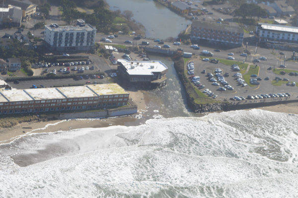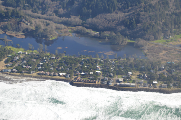 Neskowin armored to "hold the line". What looks like a lake to the east is the golf course...open seasonally - Photo: Mike Harrington / LightHawk