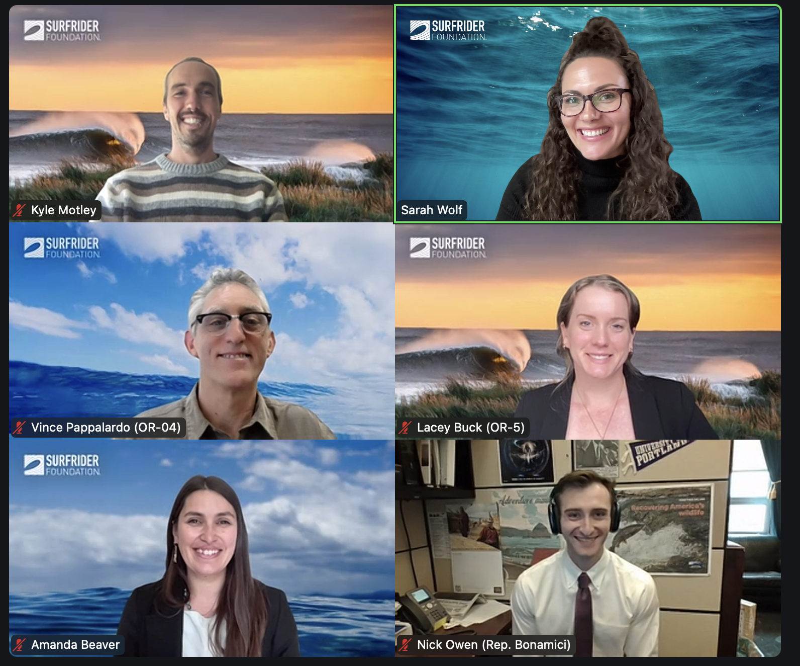 On May 14–15, five Surfrider volunteers from across Oregon joined over 170 other ocean lovers from 28 states and territories for Surfrider Foundation’s 9th Annual Coastal Recreation Hill Day. It was all virtual again this year, but that didn’t stop us from showing up strong—together we held over 120 meetings with Congressional offices to speak up for clean water, healthy beaches, and thriving coastal communities.