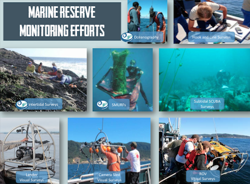 Volunteer divers from Oregon State University and the Oregon Coast Aquarium will also be conducting their ongoing monitoring by swimming transects through marine reserve habitats. Given the program is new for volunteers, extensive training and adaptive management (such as the use of stereo video cameras) is underway to help shore up inconsistencies in sizing of fish between volunteers. Divers must be able to identify a myriad of species from fish and invertebrates to algae, so developing highly trained volunteers to support this work is critical.