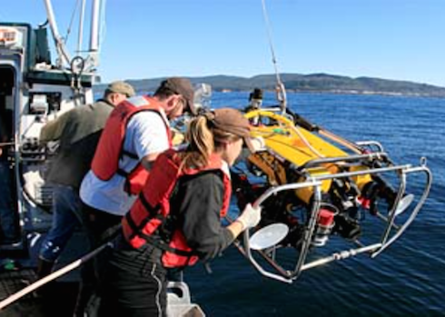 What's a video lander? Indeed it sounds like a NASA device for studying Mars or the moon, and similarly it's simply another way to explore and research Oregon's Marine Reserves. Believe it or not we know more about the moon's surface than we do about our ocean's seafloor! Video landers are simply metal frames with a number of video cameras mounted that are deployed for bottom habitat and species surveys. It gives us a snapshot of the bottom. Currently, ODFW is looking at ways of better attracting species withn the reserve to capture them through video lander surveys, such as the addition of bait. Learn more.