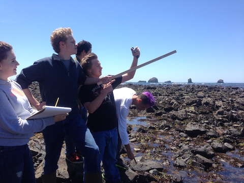 Students find GPS coordinates at Redfish Rocks Marine Reserve for intertidal surveys as part of a citizen science effort with Redfish Rocks Community Team and Surfrider