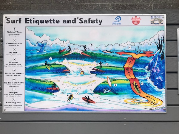The Newport Chapter of Surfrider Foundation recently just completed a project with the City of Newport to develop and install beautiful new beach and surfer etiquette and safety signs at Agate Beach, a popular surf and tourist destination. The project was a partnered effort supported by the Oregon Coast Visitor's Association to help improve the visitor experience and safety at the newly improved access point at Agate Beach near Lucky Gap Trail. With an increasing number of helicopter assisted rescues in the prominent rip current (tide) and impacts of visitors to the beach and natural resources, Surfrider and partners continue to look for creative ways to educate and safeguard visitors to the popular surf destination.