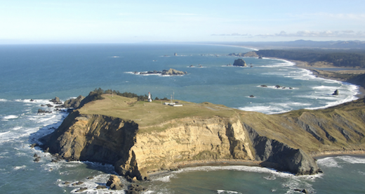 Aerial view looking north towards Cape Blanco. Fun Fact: The Cape is the furthest west point in Oregon and one of the furthest in North America!