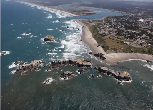 Aerial view of Coquille Point and the area of the newly established Marine Garden. Adjacent the new marine garden are many offshore rocks and islands that are also part of the Oregon Islands National Wildlife Refuge.