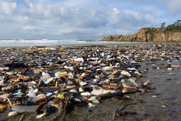 Sadly, winter through spring is now a "season of plastic pollution" on Oregon's beaches, whereby masses of plastic fragments episodically wash ashore - this scene from Otter Rock not uncommon this time of year. Photo Andree Devine