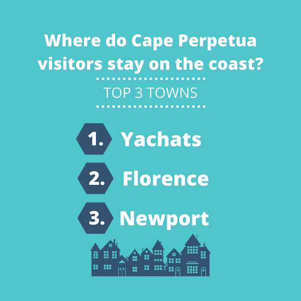 Not surprising Yachats was at the top but we were surprised that Florence topped Newport for visitor stays, indicating that Florence is a valuable future target for outreach partnerships for the Cape Perpetua Collaborative