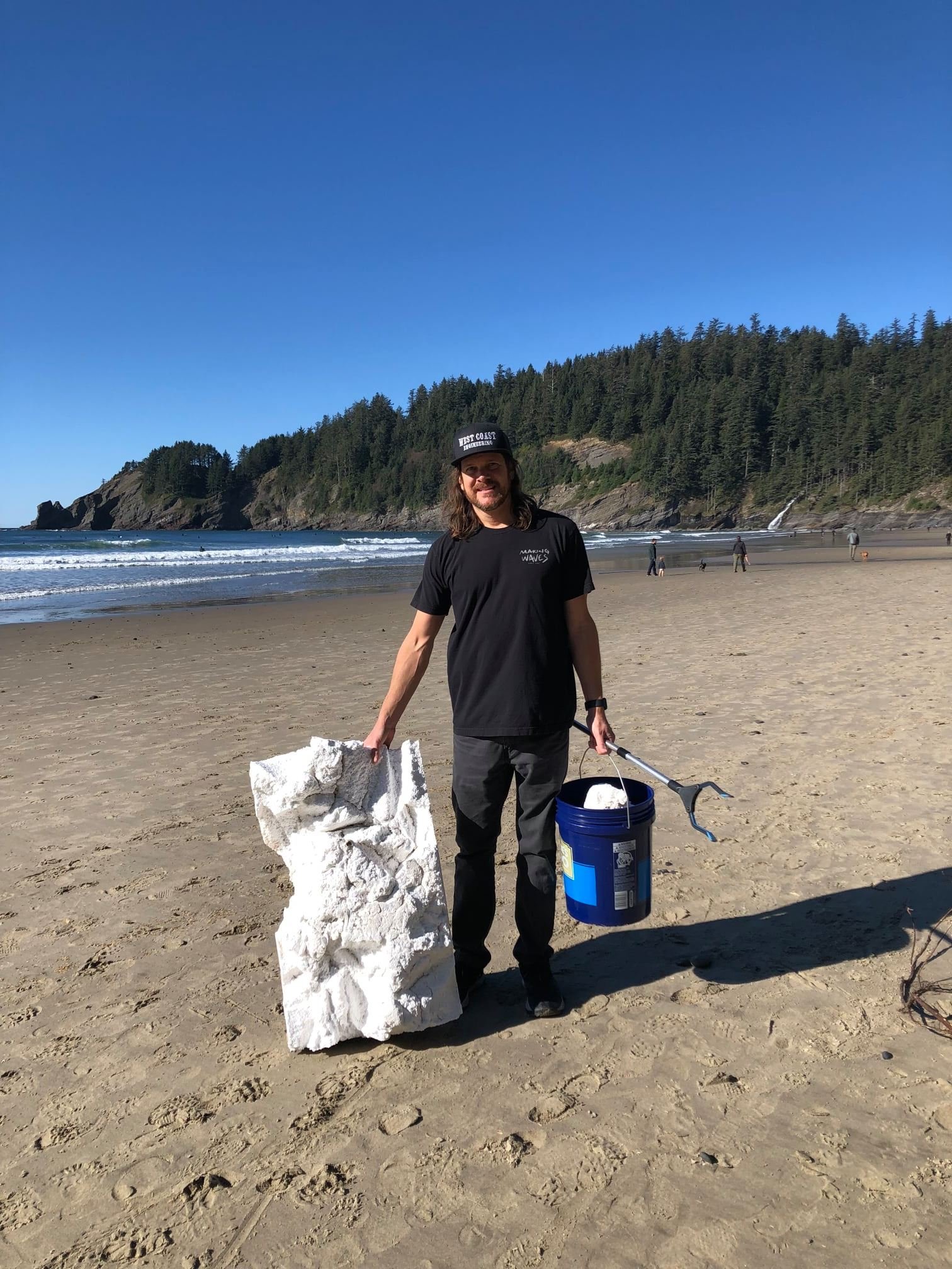 Trailkeepers of Oregon led a trail maintenance project while Surfrider led a beach clean up. Down the beach, volunteers discovered a washed up broken pier, which had loads of styrofoam breaking off and littering the wrack line. State Parks was notified and the dock will be removed soon! Volunteers also worked to improve the beach access to the beach by moving rocks to create a level, sandy trail.