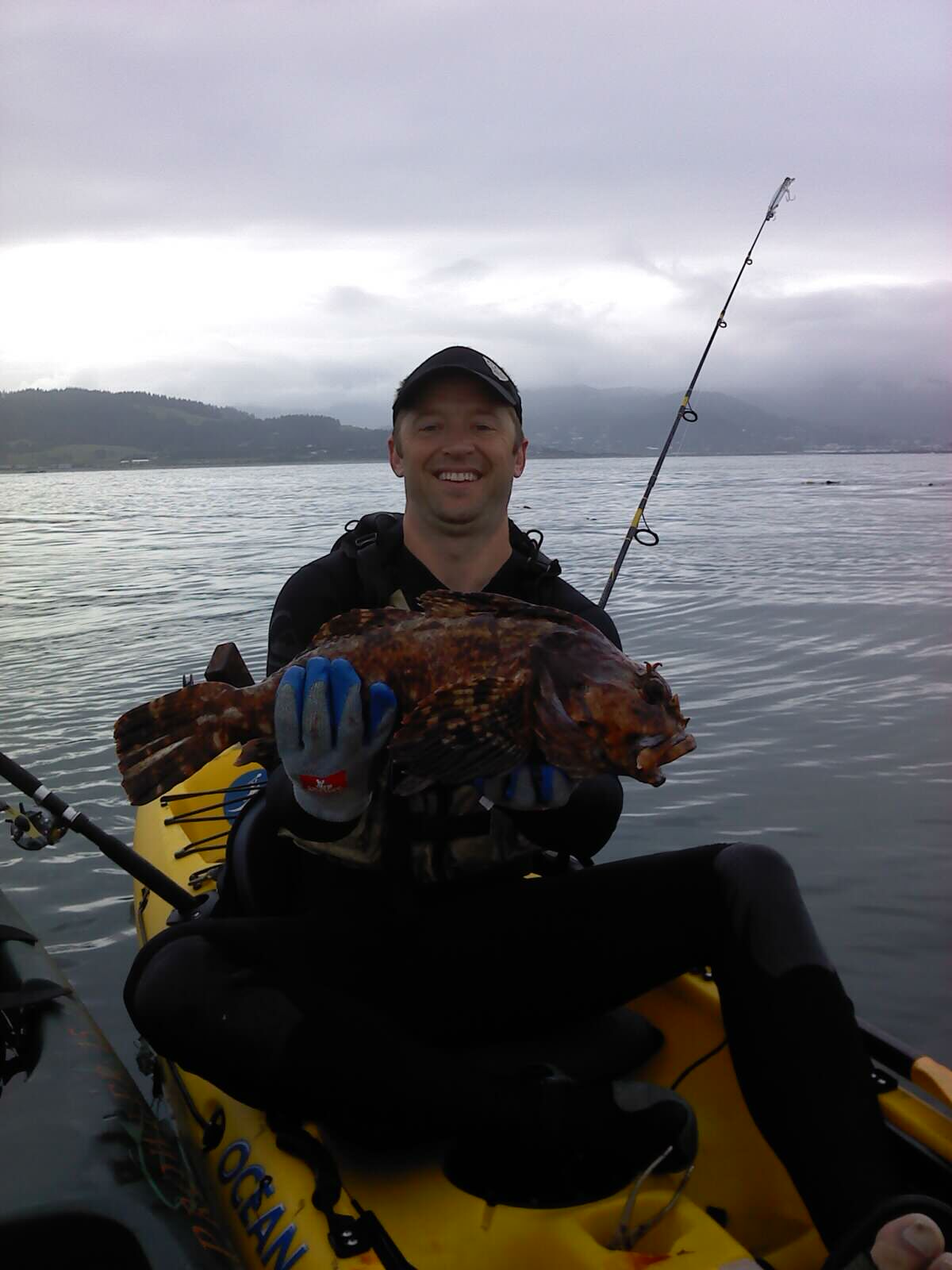 Pro Guide Dave Lacey with a nice Rogue Reef Cabezon