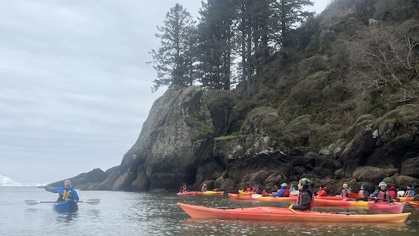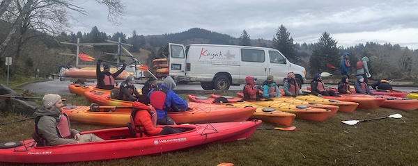 Kayak Tillamook giving instruction to our group on dry land before we depart the estuary on our tour.