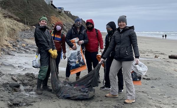 Despite the glum weather, a cheerful and super motivated group of young adults hopped off a school bus and from a handful of cars ready for a day of coastal adventure. We spent the morning learning about the Cascade Head Marine Reserve and Protected Area, conducted a beach cleanup at Roads End, bearing witness to some of the ongoing threats to marine conservation efforts like plastic pollution. Our next stop was the Lincoln City Cultural Center where we'd eat lunch and participate in a community collaborative art exhibit, as an extension to learning about plastic pollution at the beach.