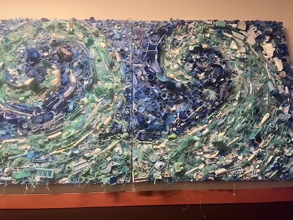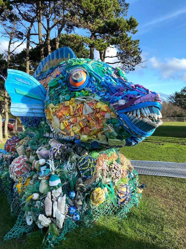 One of the plastic pollution art pieces on display at the Lincoln City Cultural Center. Completely composed of marine debris collected from cleanups, the