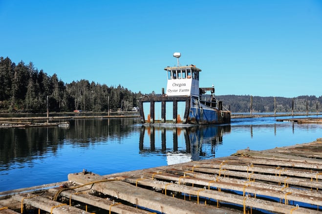 Pictured: Oregon Oyster Farm in Yaquina Bay. Photo: The Briny Babe blog: "Reviving the Riches of Yaquina Bay: The Story of Oregon Oyster Farms"
