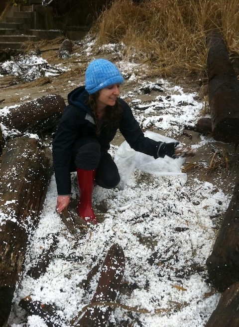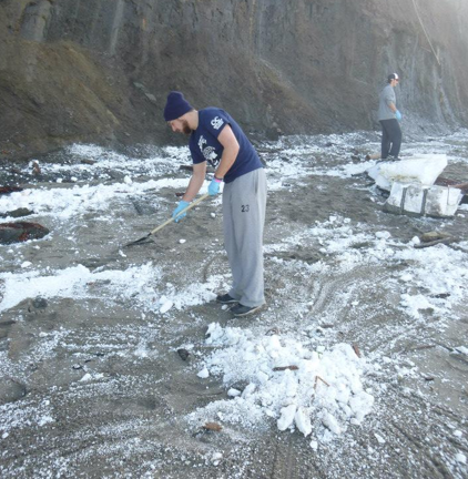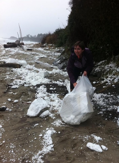 February 1 update, go here. New Years for Coos Bay brought 50-60ft sections of a privately owned dock to Lighthouse Beach presenting homeowners, beach-lovers and natural resource agencies with criminal loads of plastic foam (polystyrene a.k.a "white trash") within the marine and beach environment and along personal property. While OPRD and volunteers have been desperately working around the clock to remove what they can, the white trash continues to break apart into smaller and smaller fragments, being released into the marine waters and coastline like a ship spewing oil.